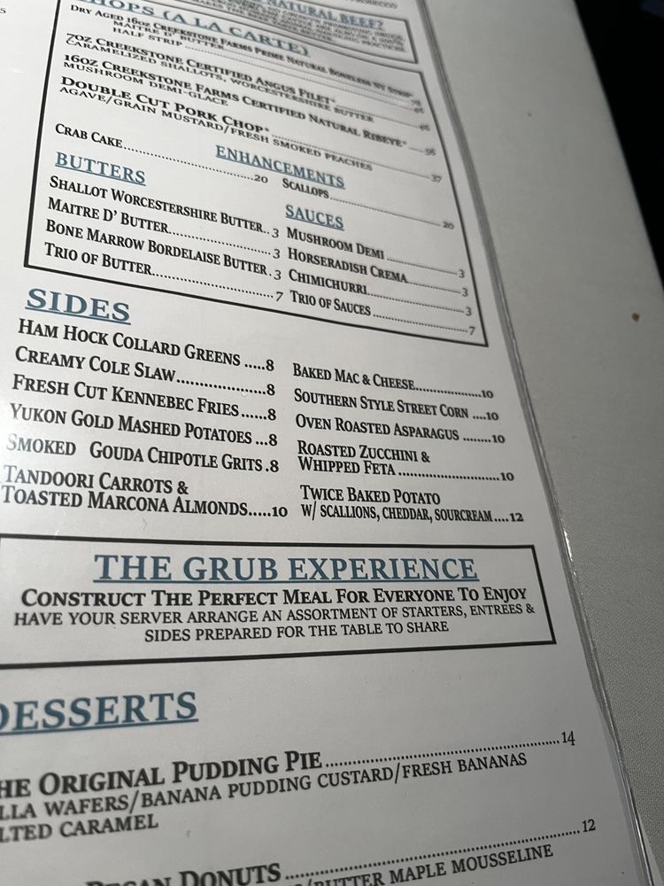 Customers rave about the exceptional service and delectable dishes, like the scallops, pork chops, shrimp and grits, crab cake, and bacon jam burger. The atmosphere is described as cozy and inviting, perfect for any occasion. For a unique dining experience, try the Green Goddess dressing, double cut pork chop, or the tomahawk steaks.